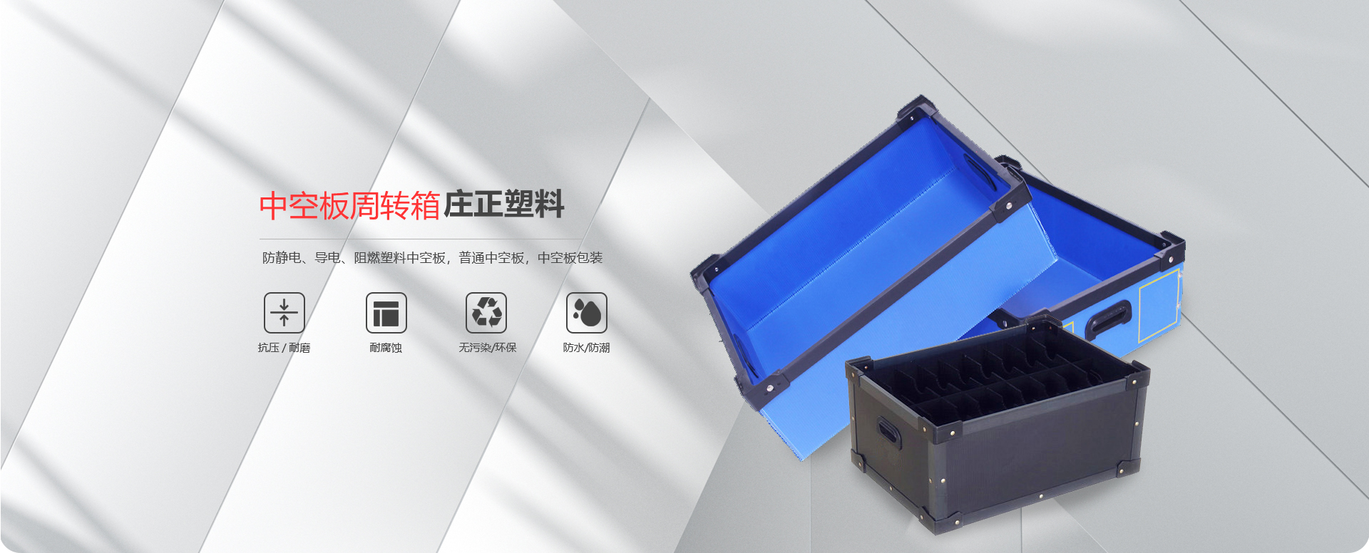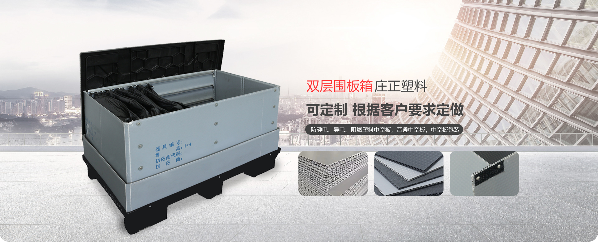 威海莊正塑料中空板有限公司是一家專注于圍板箱產(chǎn)品和中空板產(chǎn)品研究、開(kāi)發(fā)、生產(chǎn)及銷售的高科技企業(yè)。我司專業(yè)生產(chǎn)銷售圍板箱、防靜電、導(dǎo)電、阻燃塑料中空板,普通中空板,中空板包裝等。是一家及研發(fā)、設(shè)計(jì)、生產(chǎn)、銷售一體化的專業(yè)制造商。產(chǎn)品具有質(zhì)輕、防潮、耐油污、抗腐蝕、無(wú)毒、無(wú)污染顏色豐富的新型環(huán)保產(chǎn)品。 主要產(chǎn)品:圍板箱、普通塑料中空板,防靜電、導(dǎo)電塑料中空板,中空板周轉(zhuǎn)箱,中空板包裝箱,中空板墊板,中空板托盤、塑料包裝制品等系列產(chǎn)品。